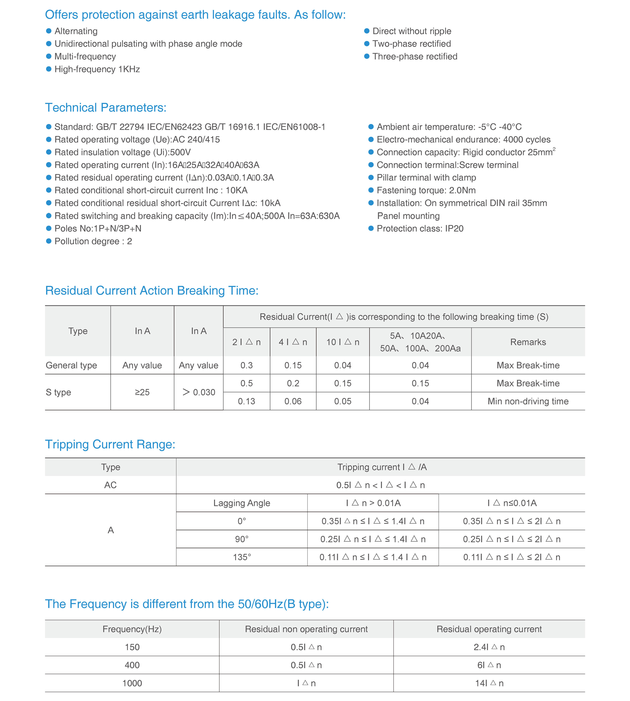 ● Automatically disconnect the circuit when earth fault/leakage current occurs and exceedsthe rated sensitivity.