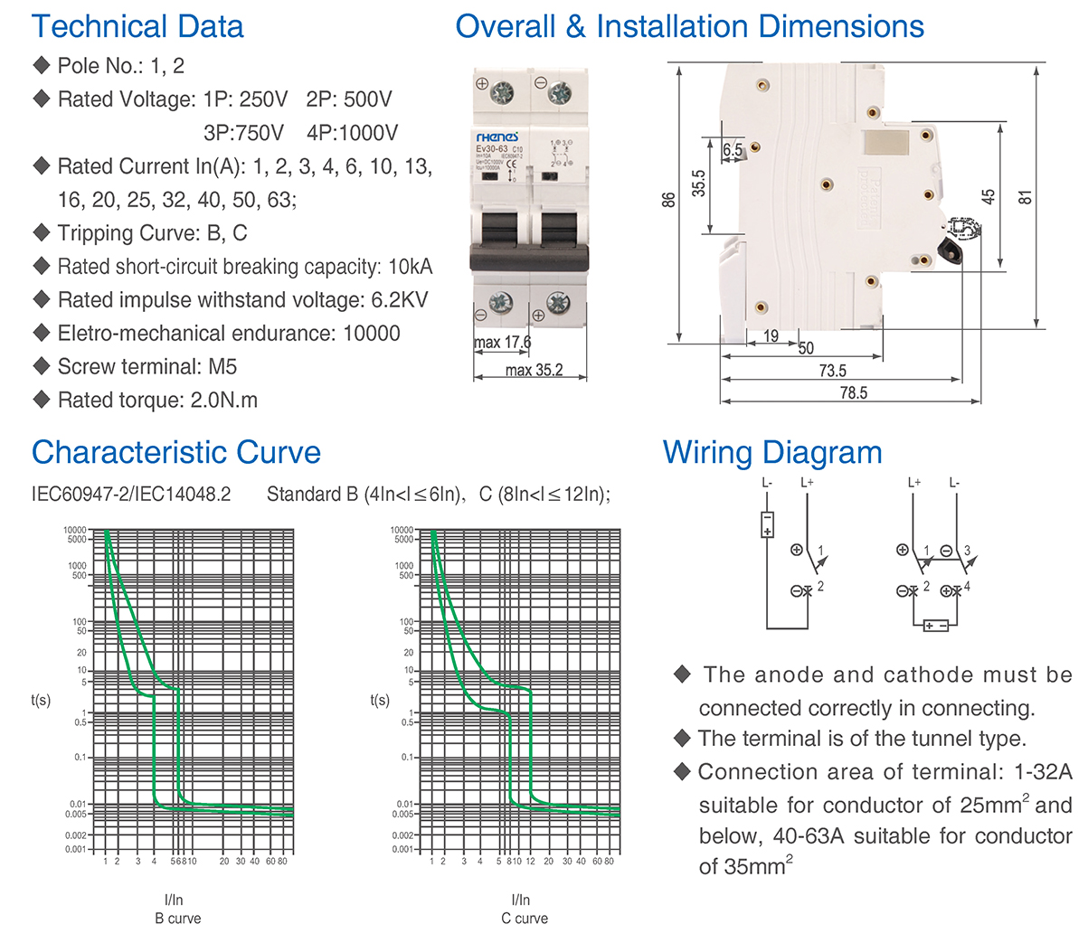 High short-circuit capacity 10KA for whole range and 15kA capacity for current rating up to 40A thanks to the powerful electric arc extinguishing system.
