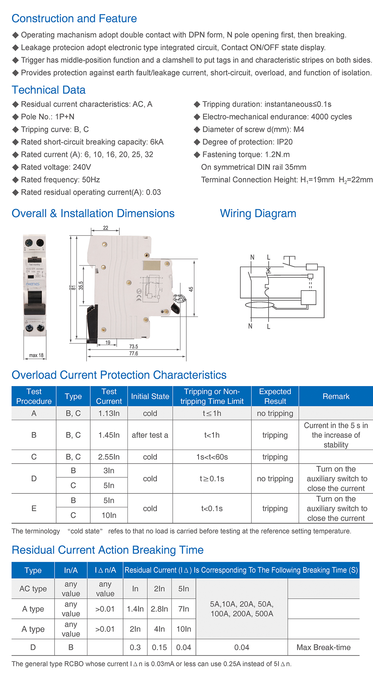 ◆ Operating machanism adopt double contact with DPN form, N pole opening first, then breaking.