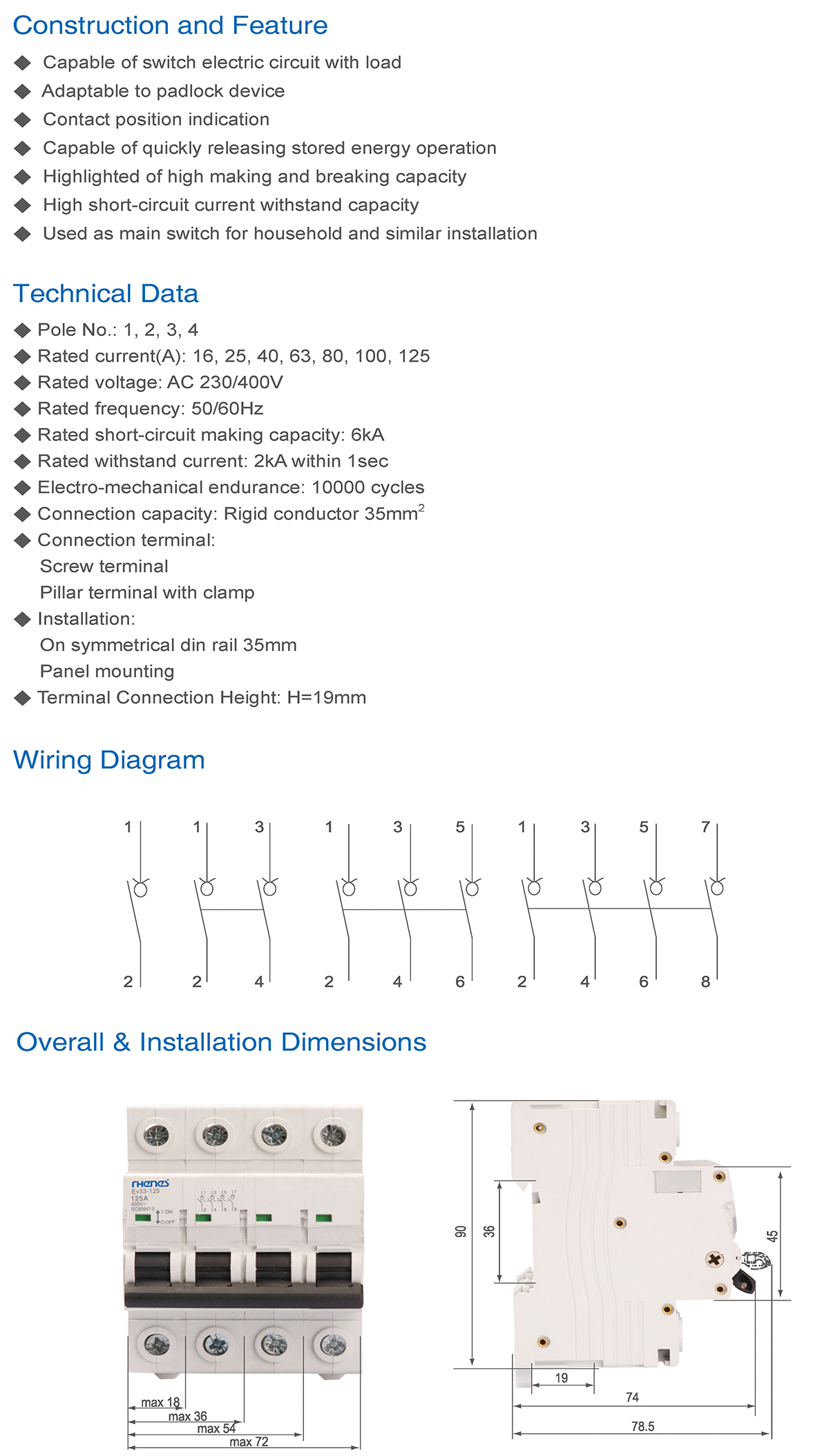 ◆ Rated current(A): 16, 25, 40, 63, 80, 100, 125