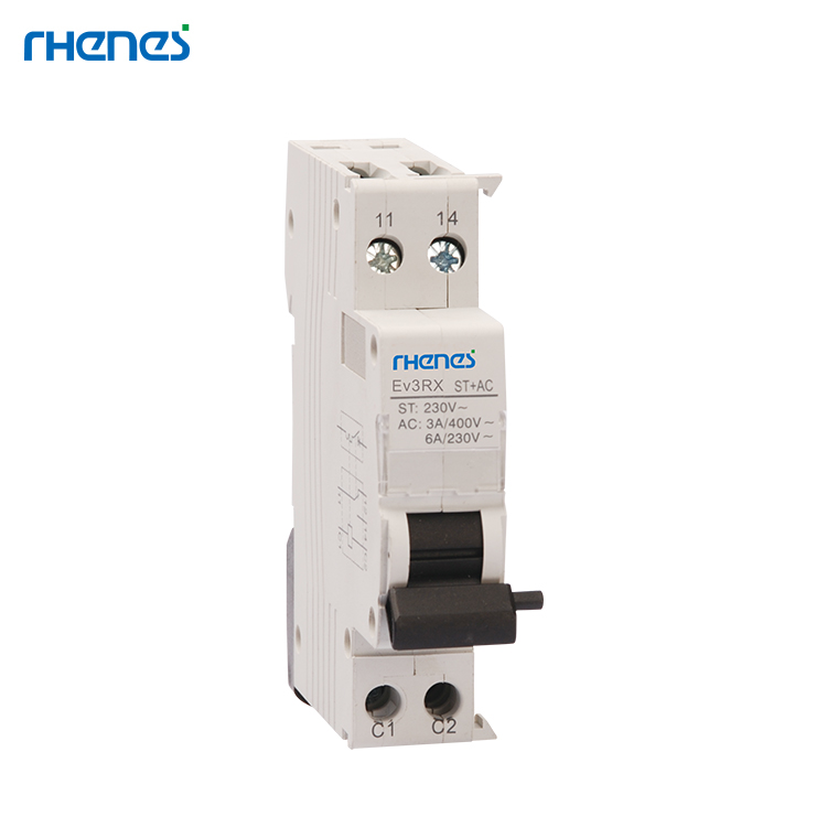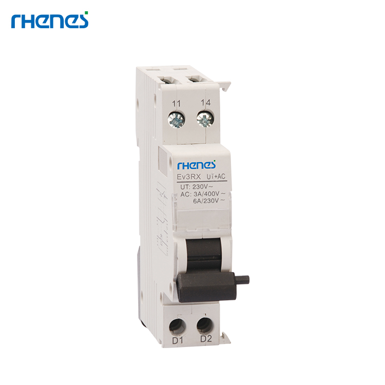 Ev3RX Auxiliary is to be installed in left side of products (such as Ev30-63 MCB, Ev31-125 RCCB,Ev32-40 RCBO), with function of auxiliary contact, remote shunt tripper, and under-voltage.